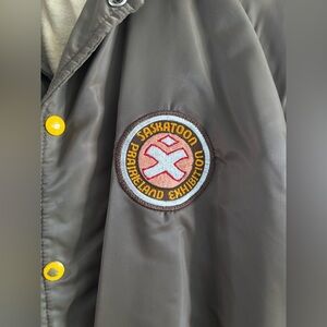Vintage 1970s Retro Nylon Jacket Brown & Yellow Varsity Style Patch Detail Rare