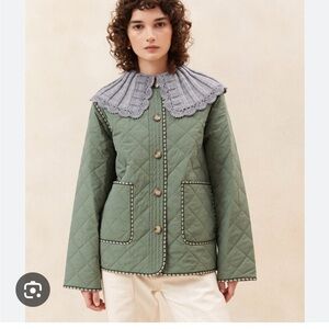 Loeffler Randall Carolina Quilted Jacket Coat Crochet Collar Cream Small