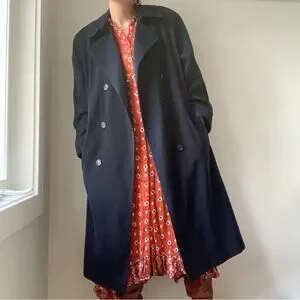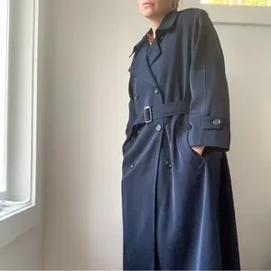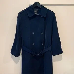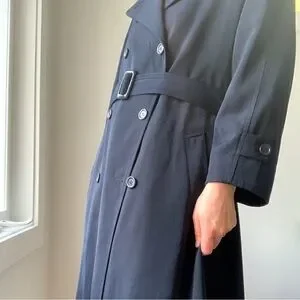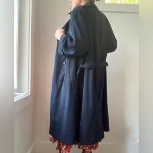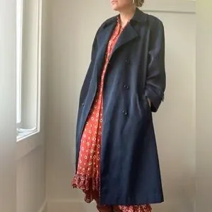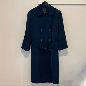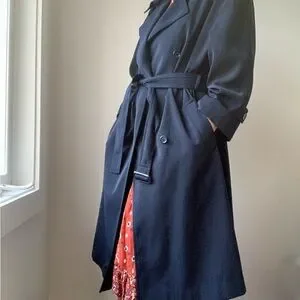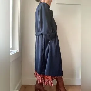 Beautiful stream lined trench in a deep navy. Great worn casually over denim and a graphic tee, or belt over a midi dress for a more formal occasion.