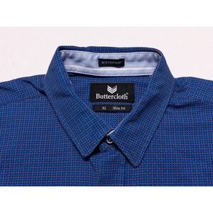 BUTTERCLOTH Icy Cotton Short Sleeve Button Shirt Blue Dots All Over XL Slim Fit