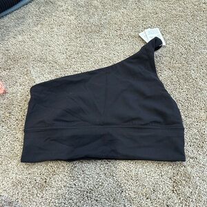 Stylish one-shoulder design. Sleek and supportive fit. Perfect for workouts.