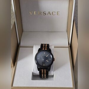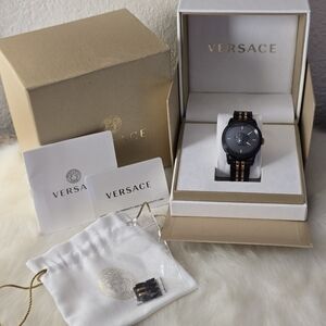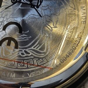 This watch is in excellent condition, worn once & it's sitted on my closet, we don't have use for it anymore. No major details or scratches, scuff or damage to mention. Links were removed in order to make it a little small but they are in a little clear bag included inside the box. This watch includes a gold box and white original box & authenticity papers. Gold box has scratches and white box has a little peeling in aside of it, please see pictures for details. If you need more pictures and videos, just let me know & I'll be happy to assist you!