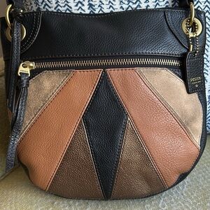 Embrace a blend of style and versatility with the FOSSIL Karli Convertible Hobo. This eye-catching bag features a unique patchwork design crafted from premium leather and suede, showcasing a vibrant mix of textures and colors. Its spacious interior provides ample room for your essentials. Originally had an adjustable strap that allowed you to switch from a hobo to a shoulder bag with ease, unfortunately I do not have the strap. Perfect for day-to-night transitions, this bag combines practicality with artistic flair, making it a standout addition to your accessory collection.
