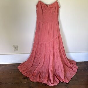 Features: Sweetheart neckline, smocking at center, tiered bottom hem, adjustable shoulder straps