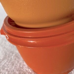 Great vintage condition. Minor signs of wear shown in pics. Measurements in pics. Please look at all pics and zoom in for a closer view. Two different oranges. Vintage stacking bowls with lids, perfect for all your kitchen needs. Durable and stylish design. Vintage Tupperware Orange Yellow Servalier Stacking Bowls With Lids 4pcs