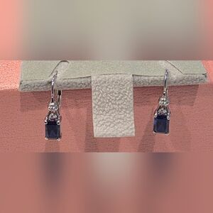 14K White Gold intense blue sapphire, emerald cut earrings with small diamonds.Perfect for adding a touch of sophistication to any outfit.Leverback,Stamped 14K. Brand new.
