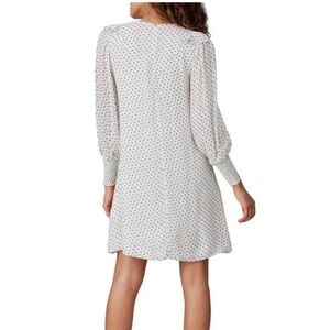 White polka dot printed crepe (100% Viscose). Shift. Long sleeves. Crew neckline. Hidden back zipper closure.
