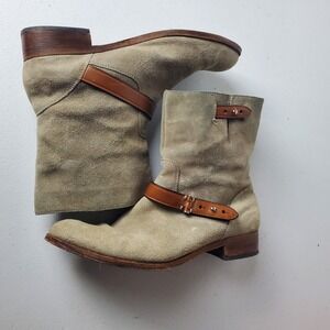 Coach Amy Womens Boots 9.5 B Taupe Western Suede Boho Casual Brown Strap