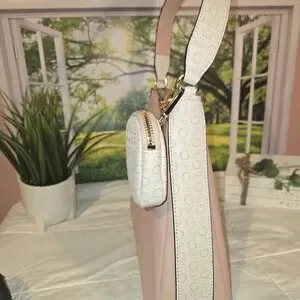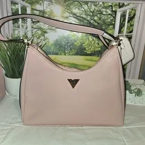 Chic Guess shoulder bag in blush pink. Features a stylish top handle and zip closure. Ideal for daily wear.