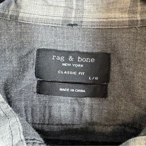rag and bone shirt, gray plaid shirt men, mens button down shirt, classic fit cotton shirt, casual menswear top, workwear shirt men, everyday plaid shirt, mens size large shirt, long sleeve plaid shirt, minimalist mens style, modern casual shirt