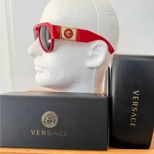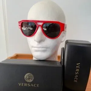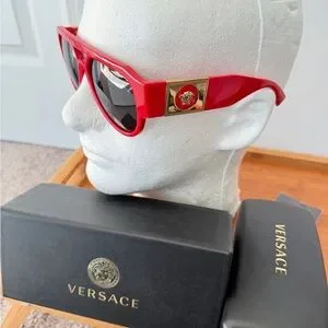 New Versace Pilot Sunglasses Red Gold Medallion Medusa logo