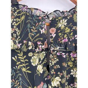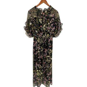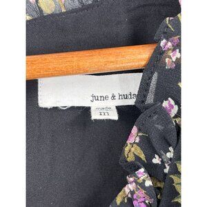 JUNE & HUDSON Women's Black Floral Faux Wrap Half Sleeve Dress Medium