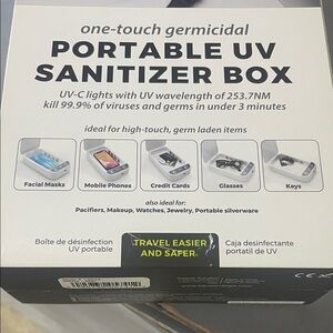 Efficient UV sanitizer box by Travelon. Eliminates 99.9% of germs in under 3 minutes. Ideal for phones, keys, and more. Brand new in box!