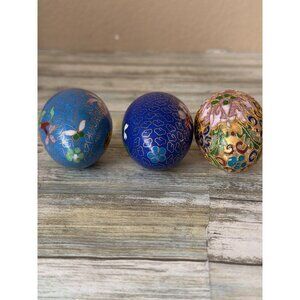 This listing is for a lot of three decorative cloisonné enamel eggs.