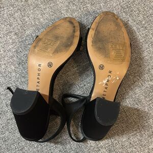 Metaphor Sesha Black Satin Jewel Embellished Open Toe Block Heels