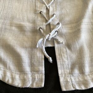 Anthropologie Cloth & Stone lace up back blouse soft grey plaid long sleeve S