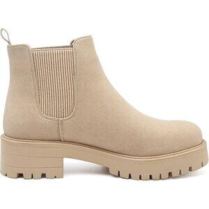 Girls Apricot Pull-On Fall Chelsea Boots Water-Resistant PU Ankle Heel Boots