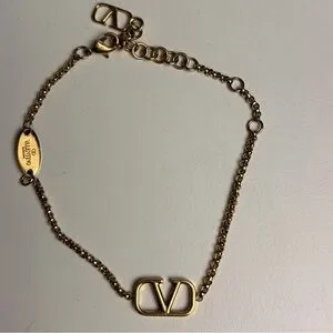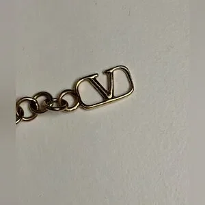 Chic gold-tone bracelet with iconic Valentino logo at center and also at end. Adjustable for wrists 6-8.25”. Very good pre-loved condition. Current design, in Valentino store for $370. Made in Italy. Only minor scratches visible if you zoom in. No box or dustbag, but will ship in generic pouch.