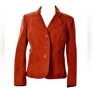 J. JILL Women’s Brushed Cotton Burnt Orange Blazer Jacket Size 4 Earthy Fall