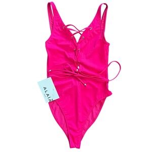 Keywords: Alaia, one piece, swimsuit, fuchsia, lace up, sculpting, jersey, luxury, designer, beachwear, resort wear, Italian made