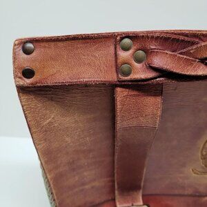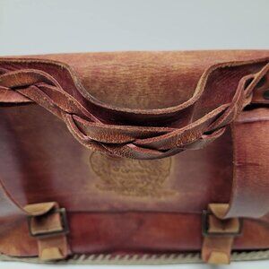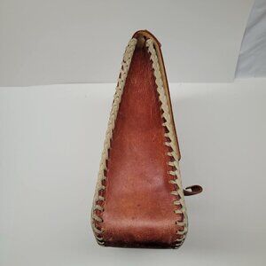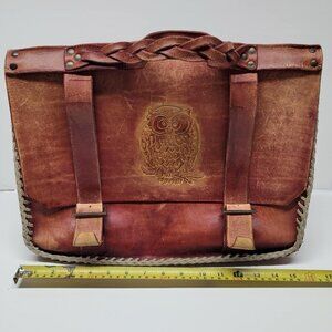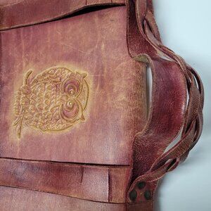Vintage 1980 Handmande Leather Messanger Purse Owl Curved Satchel Bag Red 80s