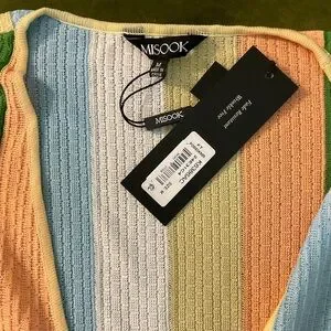 Misook Heritage Intarsia Fringe Knit Jacket Sz Med
