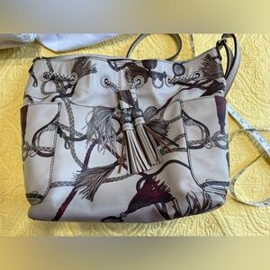 Brighton Sorella Ferrara Cream and Brown Shoulder crossbody Bag w/Tassels