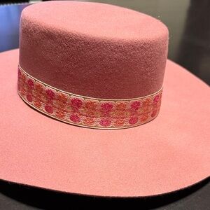 Chic pink boater hat by Lack Of Color. Features a floral band for added style. Ideal for elevating any look.