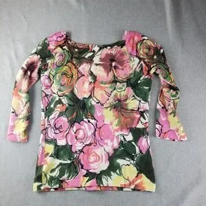 Neiman Marcus Sweater Womens Small Floral Cashmere Scoop Neckline Pullover