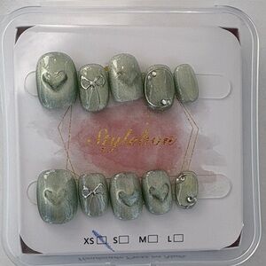 Five XS press-on nail art sets featuring feminine designs. Perfect for a stylishly charming DIY manicures.