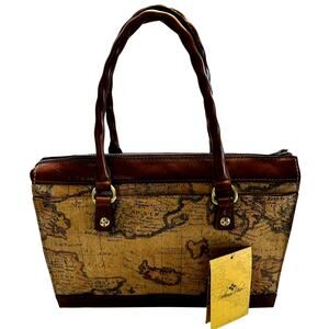 Patricia Nash! Elevate your wardrobe with this quality 100% leather 'Josselin' Medium Crossbody Satchel Bag in the European Map color/design by Patricia Nash. The two satchel handles are twisted rope style and includes a detachable and adjustable crossbody strap. There is a top zipper closure with brasstone hardware, The interior is lined with a soft faux sued material and has 1 zip pocket and two slip pockets-the exterior features a back and front slip pocket. The bag measures approximately 12.5"L x 4.75"W x 9.5"H and has a 5.25" handle drop and 21.5"-24.5" strap drop. This bag is new with original tags, includes a branded storage bag and a great addition to anyone's wardrobe! # 1621