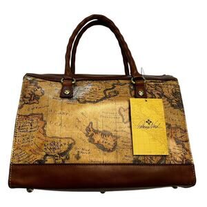 Patricia Nash Leather 'Josselin' Crossbody Satchel Bag- European Map-NEW