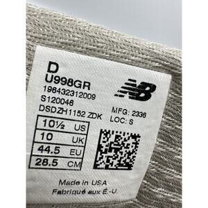 The product is a pair of New Balance 998 Core athletic shoes in size 10.5, featuring a lace-up closure and a low top shoe shaft style. These sneakers are designed for men and are made in the USA. The color scheme includes a grey and silver combination, with the shoe featuring a rubber outsole, cushioned and comfortable insole, and synthetic upper material. Ideal for various athletic activities like gym training, running, and walking, these shoes are part of the New Balance 900 Series and are a stylish choice for both activewear and casual wear.