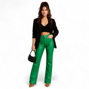 Command attention without saying a word. These Good American Icon Fit faux leather pants are cut in a saturated bright green that looks just as good with a beat-up vintage tee as it does with a corset and heels. The straight-leg silhouette is tailored but relaxed, and the extra-long length is made to sweep right over stilettos, platforms, or your boldest boots.