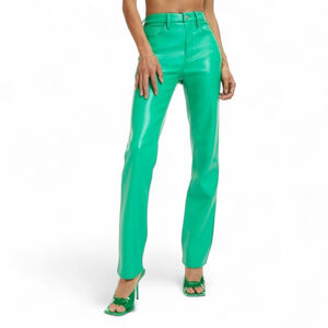 Good American Icon Fit Faux Leather Pants | Bright Green Sz 4 / 27 | Over-Heel Fit