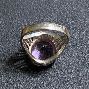 Vintage sterling silver amethyst ring, good vintage condition. Size 6. Set is in great condition; sterling band is a tad bit worn. Ring looks great when worn! I do not test sterling silver. I was told it was sterling when I purchased it many years ago.