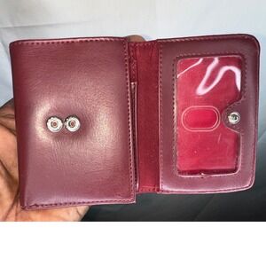 Nine West Red Leather Tri Fold Wallet Snap Closure Coin Pocket ID Window