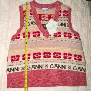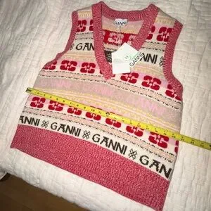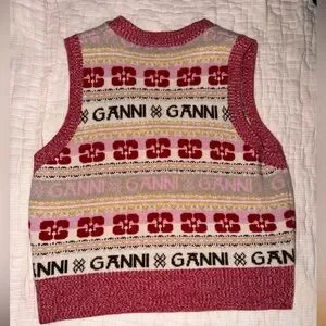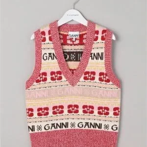 Stylish Ganni sweater vest with vibrant patterns. Perfect for layering.