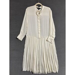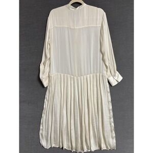 Banana Republic Dress S Cream Pleated Drop Waist Silky Lightweight Minimalist