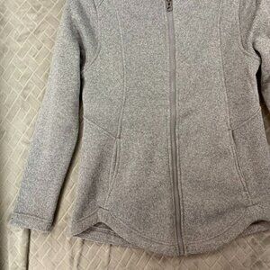 Eddie Bauer Womens Small Athletic Hoodie Sweatshirt Gray Fitted Fleece Zip Up. No stains or holes.