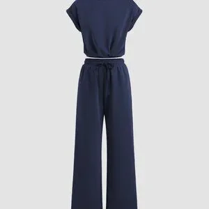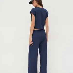 Cider Matched Two-Piece Set straight leg crop top dark navy size XL