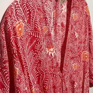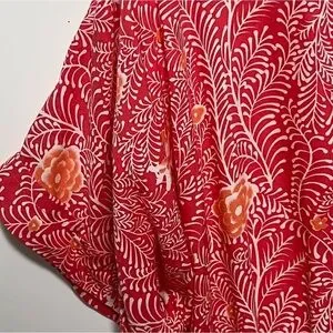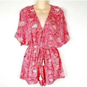 Flowy flattering red Floral short sleeve elasticized drawstring BeachGold Romper