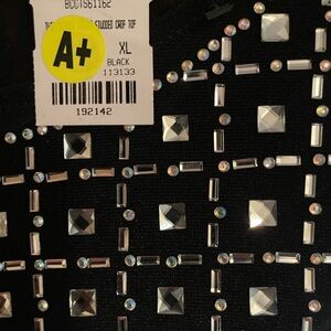 Chic crop top with geometric pattern. Long sleeves. Perfect for a bold statement.