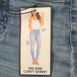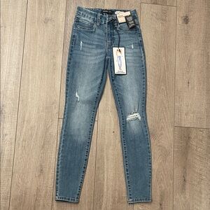 BCBG Generation MidRise Curvy Skinny Women's Blue Distressed Jeans Size 0/24