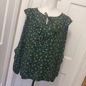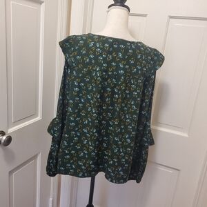 NWT Sonoma Floral Print Ruffle Peasant Blouse Size 0X green/blue