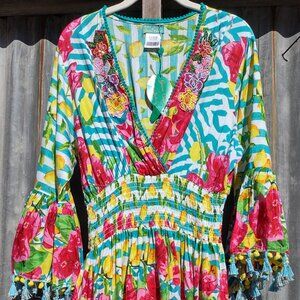 NEW Antica Sartoria - Giacomo Beaded Floral Maxi Dress Tassels Embroidered OS