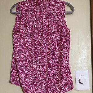 LOFT Fuchsia Sleeveless Blouse with White Dots