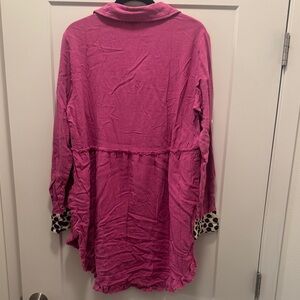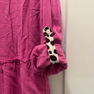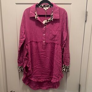 🆕 Umgee Fuchsia Button Down Shirt with Leopard Accents. L. NWT!💥💥