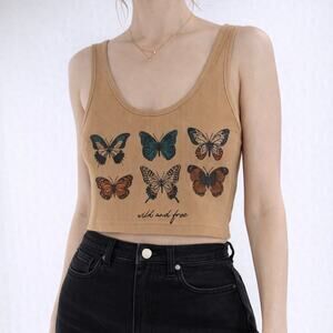 Women’s Wild & Free Butterfly Tan Graphic Ribbed Cropped Tank Top Size XS