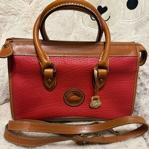 Chic and versatile tote bag in vibrant red and tan. Perfect for adding a pop of color to any outfit.